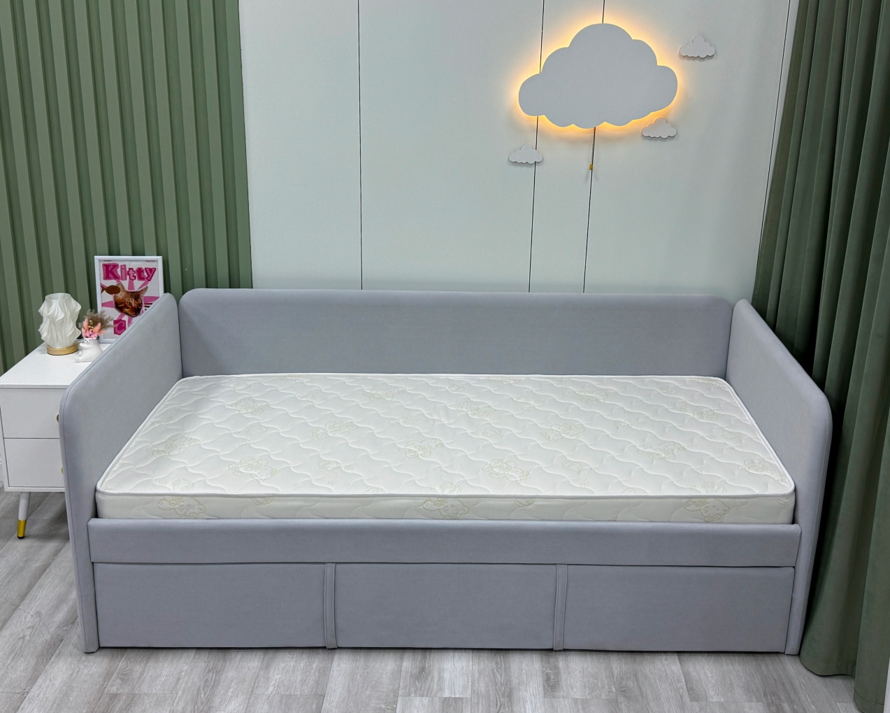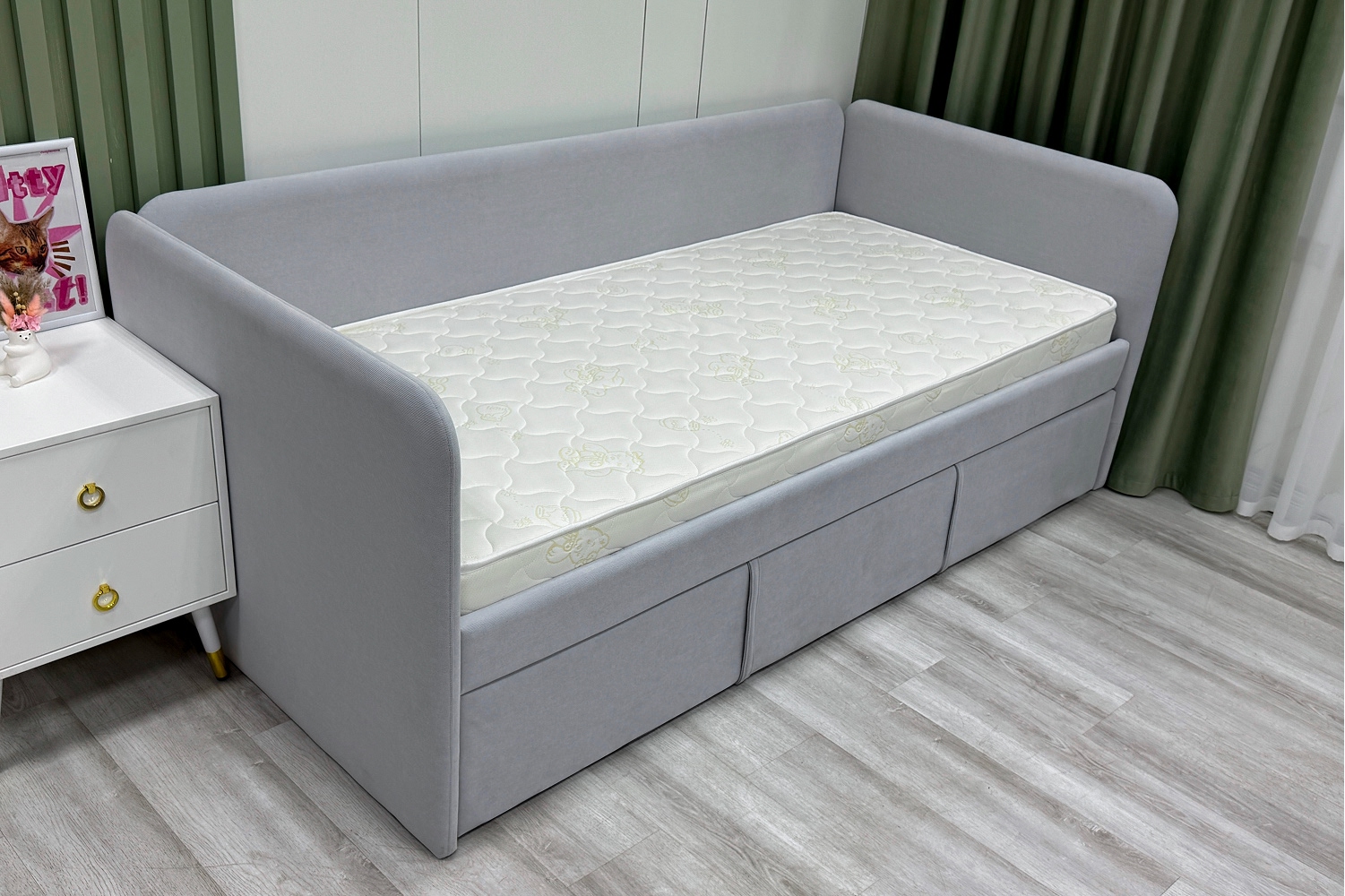 Трикотаж «Teddy» — это невероятно мягкая и уютная ткань с нежной, слегка пушистой поверхностью, напоминающей плюшевого мишку. Она создана специально для детских матрасов, чтобы каждый сон малыша был максимально комфортным и тёплым. Благодаря своей структуре трикотаж «Teddy» прекрасно сохраняет тепло, оставаясь при этом дышащим материалом, который поддерживает оптимальный микроклимат. Ткань гипоаллергенна, не раздражает нежную кожу ребёнка и устойчива к истиранию, сохраняя свою мягкость и привлекательный вид на долгие годы.)